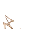 Elegant sandal i metallisk læder med et feminint og raffineret udtryk. De slanke krydsede remme og den åbne tå skaber en let og elegant silhuet, mens den smalle hæl giver et sofistikeret løft. Den skinnende finish tilfører et eksklusivt touch, der gør sandalen perfekt til både festlige begivenheder og elegante sommerlooks.