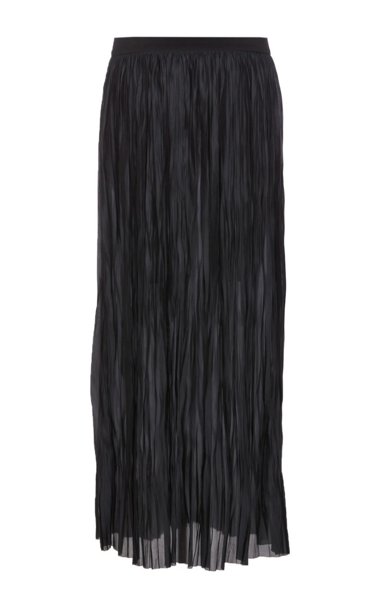 Denna svarta kjol från Roberto Collina är tillverkad av 100% polyester och tillverkad i Italien. Kjolen har en resår i midjan för en bra passform och en veckad look som ger elegans och rörelsefrihet. Den långa modellen skapar en tidlös och sofistikerad look.