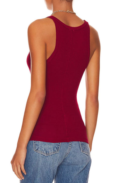 100 % bomull. Tillverkad i USA. Maskintvätt. Lätt, ribbad jersey. Toppen har rundad halsringning och rygg, tunna axelband och en rak fåll. Denna produkt är tillverkad av minst 50 % återvunnet material eller material från konsumenter.