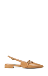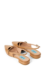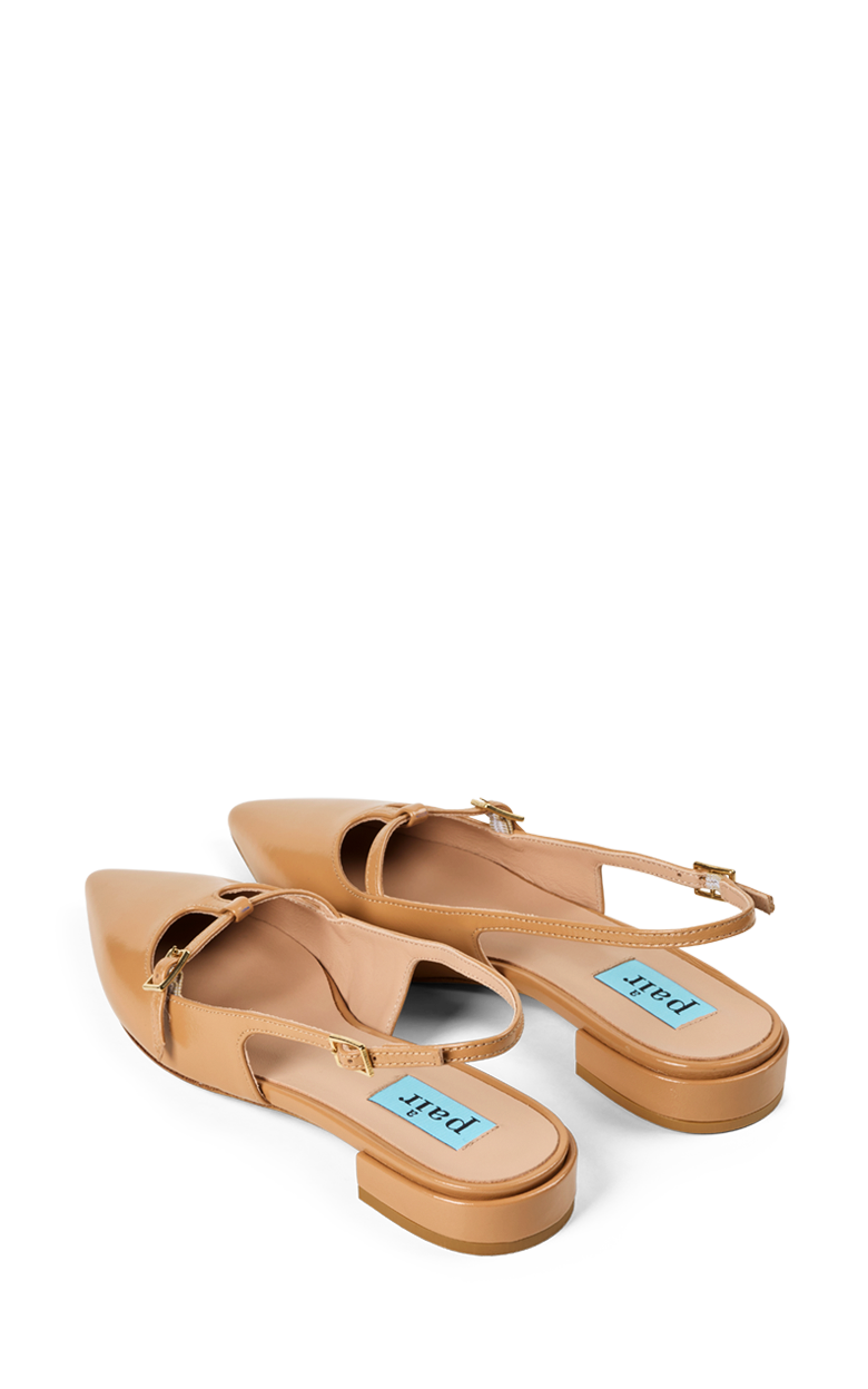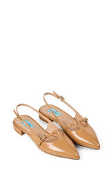 Elegant slingback i blankt læder med en feminin og sofistikeret silhuet. Den spidse snude og de fine remdetaljer giver skoen et raffineret udtryk, mens den lave hæl gør den behagelig at have på hele dagen. En klassisk og alsidig sko, der passer perfekt til både arbejde, middage og festlige anledninger.