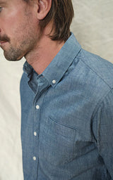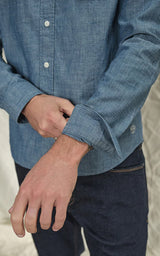 Oxfordskjortan har varit en del av den formella/avslappnade klädkoden i årtionden. En vävd och praktisk skjorta, vanligtvis tillverkad av 100 % bomull. Denna klassiska chambrayskjorta är tillverkad av ett slätvävt tyg med ett färgat garn i varpen och ett vitt garn i inslaget.